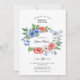 Este design floral vermelho, branco e azul patriótico é perfeito para um chá de panela de verão, 4 de julho. A frente apresenta um quadro floral vermelho branco e azul com o nome da noiva centrada no dentro. Todos os detalhes do chá de panela podem ser personalizados para atender às necessidades do seu dia especial.