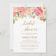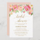 Este cartão de chá de panela pessegueira e cor-de-rosa é perfeito para um chá de panela elegante. O design floral apresenta um belo arranjo de peônias de aquarela em tons de blush e coral, combinado com uma caligrafia de folha de ouro afiada. Nota: Este design não apresenta folha de ouro real. É um gráfico de alta qualidade feito para se parecer com folhas de ouro.