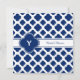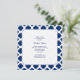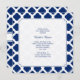 Padrão real de quatrefoil azul e branco com convites de chá de panela monogramas.