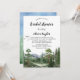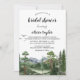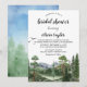 Celebrar a noiva a ser com este incrível convite inspirado no exterior. Apresentando uma paisagem de aquarela lindamente pintada de pinheiros torrenciais, pássaros arrogantes, e majestosa paisagem azul e verde de montanha, ela define o tom perfeito para um chá de panela cheio de natureza.