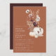 Este design apresenta elegantes flores silvestres e abóboras de aquarela em matizes quentes do outono. Perfeito para chás de panela de queda.