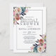 Convites de chá de panela florais de cor d'água adoráveis. As cores das flores são cor-de-rosa, azul empoeirado, rosa empoeirado e pastel macio, cor-de-rosa, azul empoeirado, com folhas verdes. Perfeito para qualquer tema, tempo ou ano, neutro. BRIDAL em letras falsas prateadas. A parte traseira do cartão tem sobrenome MRS.