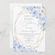 Chá de panela ArtsApp — rosas impermeáveis azuis, folhagem de eucalipto azul empoeirada e margaridas brancas borrifadas com pó de ouro. Acentuado com um quadro de facetas gem douradas esfarrapado amovível. Todos os elementos são editáveis. Copyright © 2023 ArtsApp™. Todos os direitos reservados.