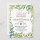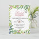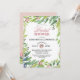 Este bonito chá de panela verde-primavera é tão fresco e doce. O design apresenta flores brilhantes, cor-de-rosa e azul, com sotaques botânicos verdes que enquadram o convite do chá. A parte traseira da placa tem um fundo cor-de-rosa pincelado e suave com buquês de primavera. Tão doce e elegante para o seu evento.