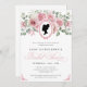 Apresentando o Chá de panela da Era da Regência Floral Rosa. Esse convite encantador apresenta folhagem cor-de-rosa-esbranquiçada e flores botânicas em aquarela, capturando perfeitamente a essência de um jardim floral vitoriano. A silhueta negra clássica e a elegante caligrafia de guião florescente evocam o encanto romântico da era Regência, fazer ideal para uma festa de chá de noiva inspirada na vintage. Perfeito para a mulher romântica que preza a elegância do eterno e a beleza refinada.