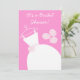 Bonito chá de panela pastel em tons de rosa, apresentando um vestido estilizado de casamento e flores em fundo rosa com escrevendo branco. Um design personalizável para você personalizar com seu próprio texto, imagens e ideias.