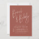 Um design simples e moderno que apresenta "Brunch & Bubble" em escrita com o nome da noiva em baixo em maiúsculas abertas. A data de celebração é exibida à esquerda em um layout empilhado com informações de local, endereço e rsvp à direita. As cartas invertem para uma linha elegante desenhando um padrão floral. Um design de caligrafia minimalista - é claro que combina com qualquer evento de bridal! O esquema de cores é uma combinação de pincel e ferrugem no estilo do deserto do boho. Mais variantes de cores estão disponíveis em nossa loja. Sinta-se livre para me enviar mensagens com qualquer pergunta relacionada a design!