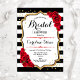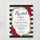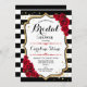Chá de panela - Black White Stripes Douradas Rosas vermelhas Elegante design floral elegante com ouro brilhante falso. Apresenta a fonte do script, faixas e rosas vermelhas em preto e branco. Perfeito para um Chá de panela na moda. Envie-me uma mensagem se precisar de mais personalização.