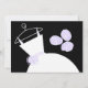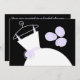 chá de panela bonito com um vestido estilizado de casamento e flores em roxo e branco sobre fundo preto. Um design personalizável para você personalizar com seu próprio texto, imagens e ideias.