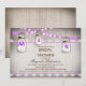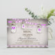 Cinza de ardósia elegante e design de renda branca com luzes de cordas roxas e frascos de pedreiro pendurados.
