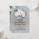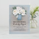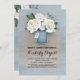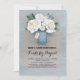 Mason jar e flores brancas pintadas com pasta azul, convites de chá de panela rústicos