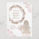 Flores cor-de-rosa macio e convites de chá de panela para vestidos de casamento