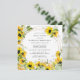 Girassóis e abóboras amarelos decoram uma moldura de ouro neste chá de panela quadrado. Há um arranjo de girassol e abóbora também na parte de trás. Este elemento faz parte da coleção de Chás de panela Sunflower e Pumpkin.