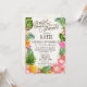 Tema russo do luau de praia com plumeria tropical, hibisco e cartão de chá de panela de abacaxi.