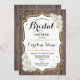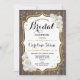 Chá de panela Rustic Wood. Design elegante com ouro brilhante falso e padrão de madeira castanha escura. Apresenta rosas brancas e fontes de script. Perfeito para um chá de panela estilo na moda country. Personalize com seus próprios detalhes.