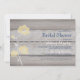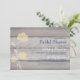 7 x 5 Rustic Floral e Lace Chá de panela. Texto floral amarelo e azul escuro sobre um fundo de madeira rústica. Personalizável. Parte de uma coleção de papéis de carta de casamento de Whimzy_Designs.