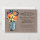 Perfeito para um Chá de panela ou Festa de noivado estilo country ou talvez você apenas ame Mason Jars! Vintage, Mason Jar pendurado num gancho com flores silvestres contra uma antiga e angustiada camada castanha. Verdes, Azul Marinho, Visitas Selvagens Amarelas e Díssias Gerber Laranja. Cores vibrantes brilhantes! Se tiver alguma dúvida sobre este design ou quiser uma mudança de cor, envie-me um e-mail para paula@labellarue.com Também verifique se o Wedding Suite, INVITATION, RSVP, RECEPÇÃO e Cards CONVIDADAS correspondem!