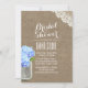 Convites de chá de panela Rustic Mason Jar Blue Hydrangea Burlap.