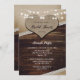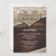 Chá de panela de casamento russo com coração de burlap contra madeira rústica adornada com burlap, lace e cordas.