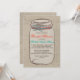 Este chá de panela rústico apresenta um fundo de burlap, com um contorno de Mason jar atado com uma fita de coral e tartaruga. Perfeito para um chá de panela rústico, vintage ou country temed.