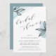 O chá de panela simples e elegante apresenta uma caligrafia moderna, escura e escura, flanqueada por ilustrações de esboço botânico estilo vintage em uma simples lavagem de aquarela azul. Personalize com os detalhes do seu chá de panela abaixo. Convites de chá de panela florais elegantes para azul poeirento sólido. Personalize o tipo ou a forma de papel para tornar este design de chic próprio.