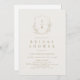 chá de panela magra e minimalista bege, com as suas iniciais monogramadas enquadradas por uma crista elegante e folhas botânicas ilustradas à mão no topo. Os detalhes do evento são mostrados abaixo no script moderno e na fonte clássica. Simples e luxo. Ver todas as peças correspondentes na coleção