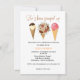 Um belo canto de sorvete de aquarela com uma flor é apresentado neste tema de chá de casamento de sorvete chic e de moda, que foi escondido e é perfeito para um convite de chá de verão. Escolha a opção personalizada para incluir seus detalhes.
