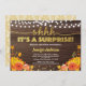 QUALQUER EVENTO SURPRESA. Todo texto sob o ouro "É uma surpresa" é editável. Convite de festas impermeável de flor de aquarela e de ouro surpresa com design de corda leve sobre fundo de madeira rústica. Clássica, feminina e glamourosa. Perfeito para qualquer evento ou festa de aniversário em qualquer idade. Receba este belo convite agora! Tema: festa surpresa Ocasião: qualquer evento surpresa - festa de aposentadoria, festa de aniversário, chá de panela, chá de fraldas, festa de aniversário. Época: outono, outono, Cores de Ação de Graças: Forradas, Douradas, Laranja, Amarelo, Toneladas de Cor de outono. Gráficos: madeira castanha rústica, luz de cordas, flor de aquarela, folhas caídas, confete de ouro falso.