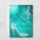 Convites de chá de panela personalizados e elegantes. Belos convites à dupla face/azul-lacrimejo e branco para chás de panela com uma bola de espelho retrovisor retro divertida, glamoroso brilho de imagem impressa, sequências, joias de borda brilham calçados de saltos altos e estilettos, e notas musicais brilhantes com brilho em um azul-lacrimejo/luz-turquesa vibrante e fundo de brilho. Chic, clássico, fofo, giro, convites modernos com cores modernas e modernas. Estes convites, na moda, sofisticados, divertidos e bonito são decorados/impressos em ambos os lados. Convites perfeitos para um evento de dança jante/dança noturna. NOTA: todos os convites no Zazzle têm imagens impressas planas. Se precisar de assistência para personalizar seu produto, entre em contato comigo através da minha loja e eu ficarei feliz em ajudar.