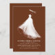 Estas convites de chá de panela são uma verdadeira personificação das emoções da noiva e o encantador prazer do seu próximo casamento. A design é uma obra-prima de elegância e minimalismo, mostrando a silhueta da noiva em um vestido branco de noiva. Esta narrativa visual conjuga um ambiente romântico e etéreo, agitando um sentido de maravilha nostálgica. A ilustração é feita com pinceladas artisticamente ásperas que se fundem num fundo de terracotta profundo, enriquecendo ainda mais o apelo visual da design. Fazendo um equilíbrio entre simplicidade e profundidade, a design fala muito da graça da noiva e da elegância do casamento, garantindo que os convites deixam uma marca indelével no coração dos beneficiários. Este convite não só anuncia um evento como também conta uma história de amor, antecipação, e a jornada para um novo capítulo da vida, fazer-o um prelúdio inesquecível para a celebração do casamento.