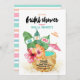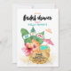 Ponha um tom tropical para a celebração do seu chá de panela com este chá de panela inspirado na ilha. Apresentando uma bebida tropical de abacaxi adornada com palmeiras e flores de hibisco em coral costeiro, rosa e turquesa, esse convite é perfeito para um tema de praia ou chá de verão. Arte da KL Stock.