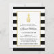 Este chá de panela de na moda tem um fundo preto e branco estripado, com uma borda falsa de um quadro de ouro e abacaxi para uma aparência moderna e tropical!