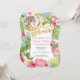 Convites de chá de panela tropicais, menta e ouro com flamingos e flores tropicais.