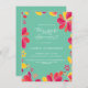 Este chá de panela divertido e elegante (4,5 x 6,25") apresenta flores coloridas e tropicais ilustradas ao longo da fronteira. Perfeito para um evento de chá de casamento lúau, ilha tropical ou havaiano. O texto pode ser personalizado para sua ocasião especial que antecede o casamento.