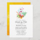 Chá de panela floral de longa distância na praia tropical por convite por correspondência com tipografia elegante de escrita manual.
