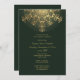 Floco de neve Dourado no chá de panela casamento no inverno verde que apresenta um floco de neve ouro sobre fundo verde. Esta design personalizada é uma modelo completamente personalizável e faz parte de um jogo perfeito para um casamento de dezembro de inverno ou de Natal.