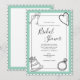 Chá de panela preto e branco moderno divertido com gráficos de casamento desenhados à mão em cada canto. Cor verde do Pastel. Perfeitamente enquadrado com uma borda branca escalada com contorno preto. Coordenar fontes adiciona à beleza deste design.
