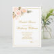 Um design de na moda com flores e texto dourado. O avião é para a mulher que ama viagem ou está tendo um casamento de destino. Pequenos pontos de ouro no verso. Personalize com os detalhes do chá de panela.