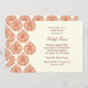 Uma cor damasco elegante e vintage enfeita este convite. É apresentado no documento de base; no entanto, sugiro o peso e a textura do papel de linho.