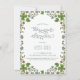Este bonito chá de panela floral foi inspirado por um antigo cartão postal do início dos anos 1900. Apresenta uma borda floral ilustrada de flores de trevo - verde, rosa e azul. A parte de trás do convite é azul com um sutil padrão de quatrefoil branco. O texto pode ser personalizado para o evento de chá de panela especial. O tamanho é "petite" para uma compra mais econômica.