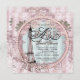 Lindas pérolas cor-de-rosa, renda e chá de panela de Paris Eiffel Tower. Este elegante chá de panela de Paris, azul e rosa, é facilmente personalizado para o seu evento. Todos os designs de convite que você encontrará no Zazzle são gráficos impressos sem fitas, arcos, joias, gemas, brilho, etc.