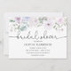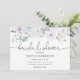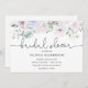 Belo Chá de panela com aquarelas verdes e flores violetas roxas. Personalize com suas informações para que a noiva seja.