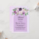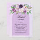 Um fundo violeta, lavanda, de cor aquosa. Decorado com flores violetas e roxas. Personalize e adicione um nome e detalhes da parte. O nome é escrito com um script de estilo manuscrito