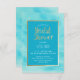 Este elegante e moderno chá de panela apresenta um fundo de aquarela azul pintado à mão, reminiscente do oceano, da praia ou do céu. Também apresenta as palavras "Chá de panela" numa fonte de ouro moderna, juntamente com uma estrutura de ouro correspondente. Uma maneira bonita e elegante de convidar convidados para o seu evento especial de pré-casamento.