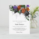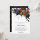 Celebre uma noiva que ama a queda ou o Halloween com um chá de panela assustador e elegante. Este design apresenta flores laranja, pretas e roxas agrupadas em torno de teias de aranha. A parte traseira apresenta uma grande teia de aranha e pode ser removida para obter uma cor sólida, clicando em "personalizar mais" em azul.