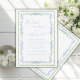 Linda cor azul-d-água, minúscula estrutura floral com estrutura verde-d-água circundando lindas fontes e scripts feitos em cores coordenadoras convite para chás de panela. Um convite perfeito para noivas para qualquer estação.