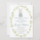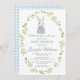 Celebre a chegada do seu pequeno com o nosso elegante convite de chá para o bebê rapaz da Páscoa. Apresentando flores da primavera azul e folhas verdes na coroa oval, este convite rústico dá o tom perfeito para uma celebração de temas fofos de primavera ou verão.