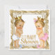 Convite de chá de bebê para revelação do sexo do príncipe ou princesa com belo fundo dourado e adoráveis príncipe e princesa usando fraldas e coroas em um belo e sofisticado fundo dourado. Este convite ornamentado de revelação do sexo do príncipe ou princesa para chá de bebê é facilmente personalizado para o seu evento, adicionando os detalhes do evento, estilo de fonte, tamanho e cor da fonte e texto. Você também pode alterar a cor do fundo deste adorável convite de revelação do sexo para chá de bebê para combinar perfeitamente com o seu tema.