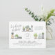 Todos nós temos uma senhora especial em nossas vidas que adora iluminar um quarto com suas lindamente cuidadas plantas. Este convite é para ela! Este design apresenta "chá da noiva!" em uma caligrafia elegante no canto superior esquerdo. Há três ilustrações da prateleira de uma casa separando o roteiro do nome da noiva e da data em um layout ziguezague. Abaixo, há o local do evento, endereço, informações de contato RSVP e registro. Cartões invertidos a um design de folha geométrica boho sobre fundo verde. Altere o texto clicando em "Personalizar este modelo". Há uma versão vertical deste design disponível em nossa loja, sinta-se à vontade para conferir!