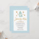 Celebre a chegada do seu bebê precioso com este elegante, chic, bonito e sonhador 'Chá por Mail Invitation', com um dinossauro azul, feliz acenando olá debaixo das estrelas na frente. O título apresenta folhas de ouro como caligrafia. O plano de fundo apresenta um padrão de seta verde azul pastel. Todos os textos estão pré-organizados para que você personalize fácil e rapidamente com os detalhes do seu chá de fraldas.
